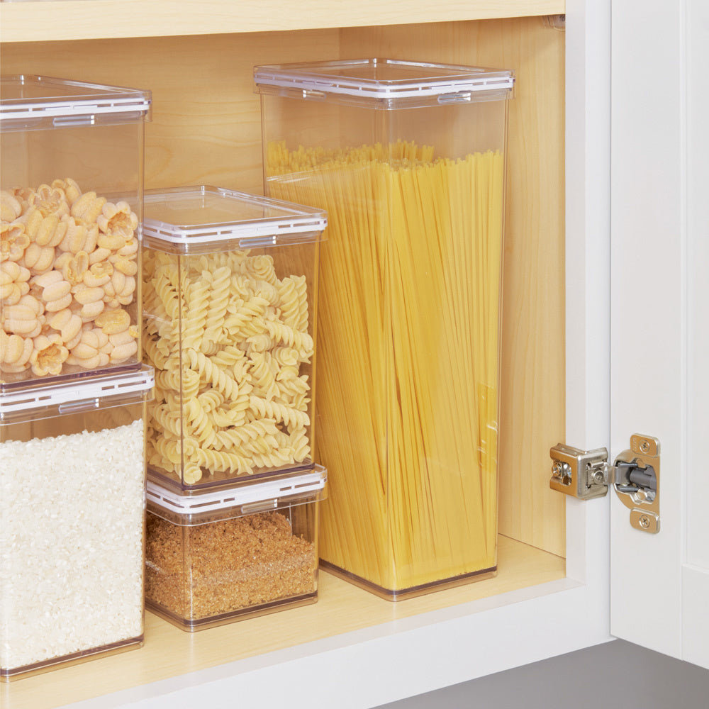 Mit diesem Aufbewahrungsbehälter von The Home Edit bleibt dein Produktbestand frisch und strukturiert. Die Behälter sind in verschiedenen Größen erhältlich und luftdicht verschlossen.