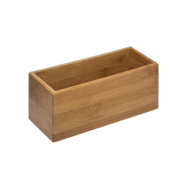 Der robuste und langlebige Bambus besticht durch seine glatte Oberfläche und klaren Linien. Nutzen Sie diesen geräumigen Bambusbehälter allein oder kombinieren Sie ihn mit kleineren Varianten für einen harmonischen Look in jeder Schublade oder jedem offenen Raum.