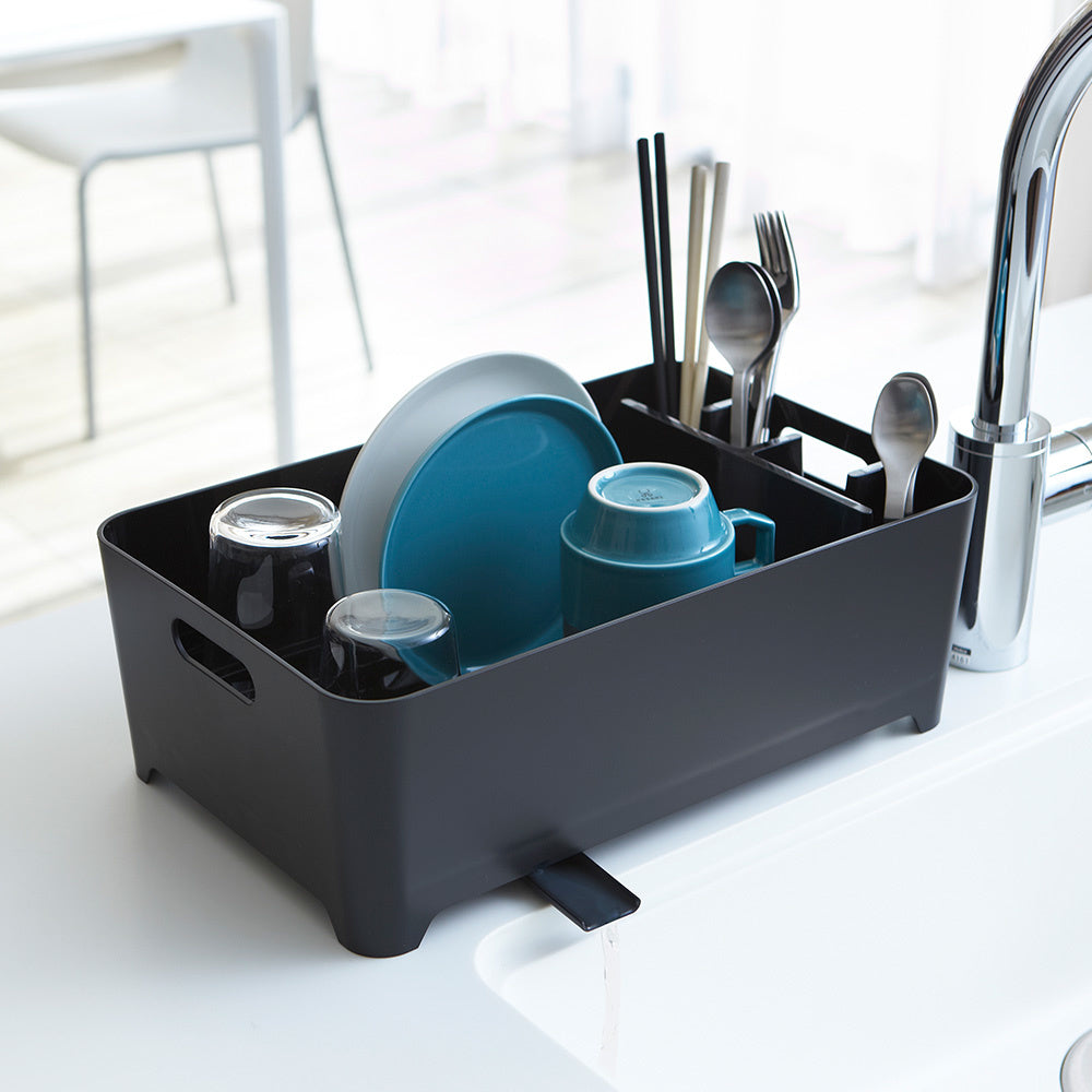 Breites Geschirr-Abtropfgestell mit Ablaufrinne schwarz Yamazaki