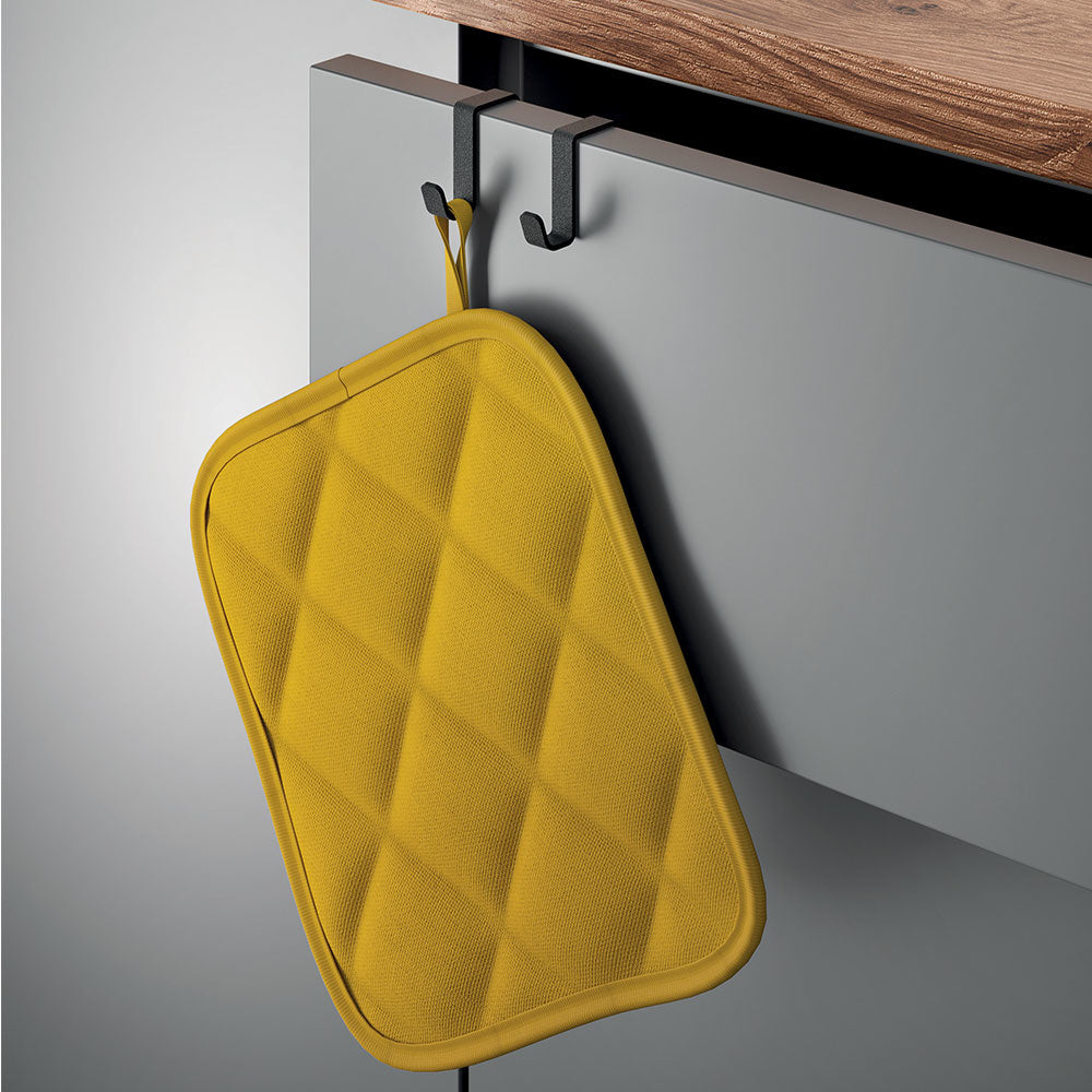 Mit diesem Doppel-Handtuchhaken in Schwarz kannst du deine Hand- und Geschirrtücher ganz einfach an der Tür eines Schranks oder einer Schublade aufhängen. Aufhängen ohne Bohren.