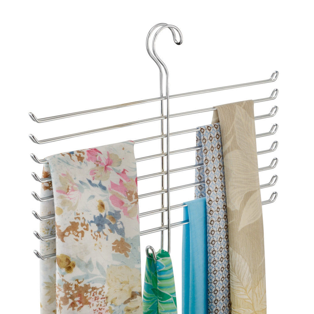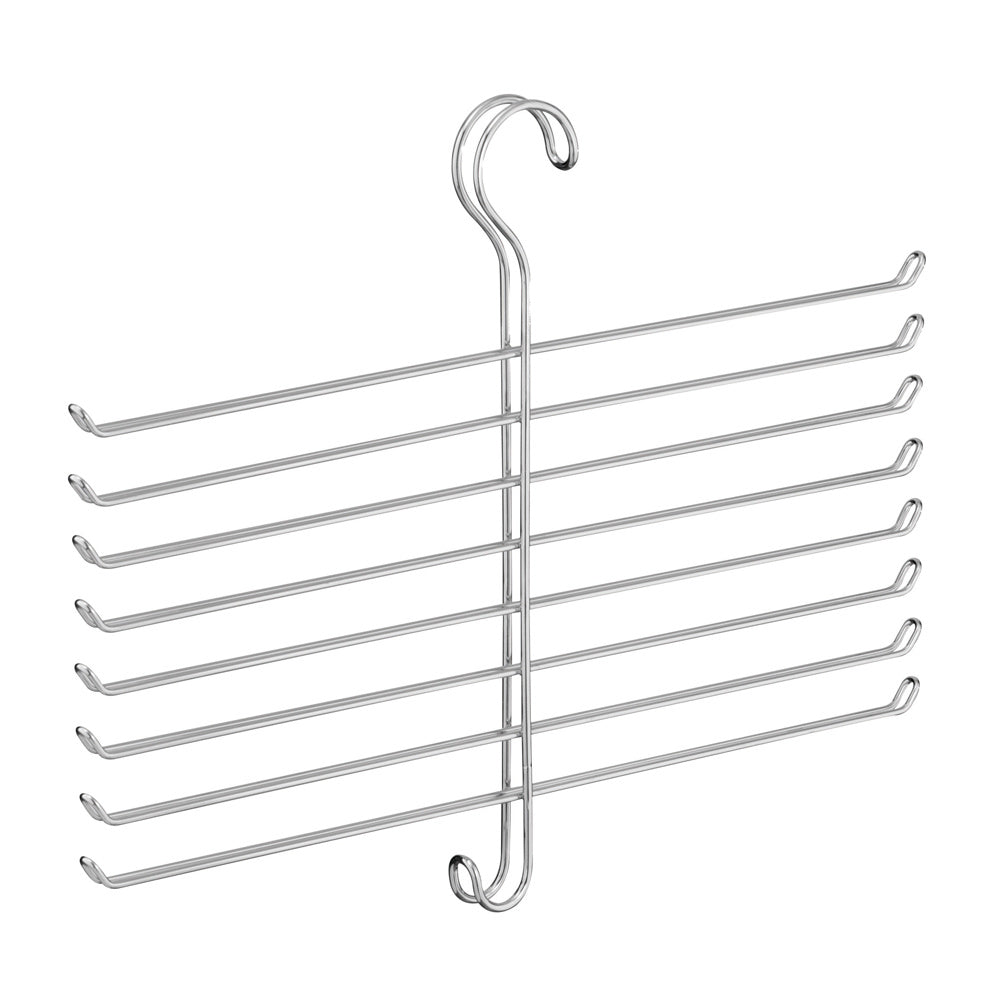 Mit seinen 8 Stangen ist dieser Kleiderbügel platzsparend und eignet sich zum Aufhängen verschiedener Schals, Krawatten und/oder Gürtel. Dank des Hakens an der Oberseite lässt sich der Mehrfachbügel einfach in den Schrank hängen. Der langlebige Stahl ist von hoher Qualität und macht den Schrank-Organizer langlebig.