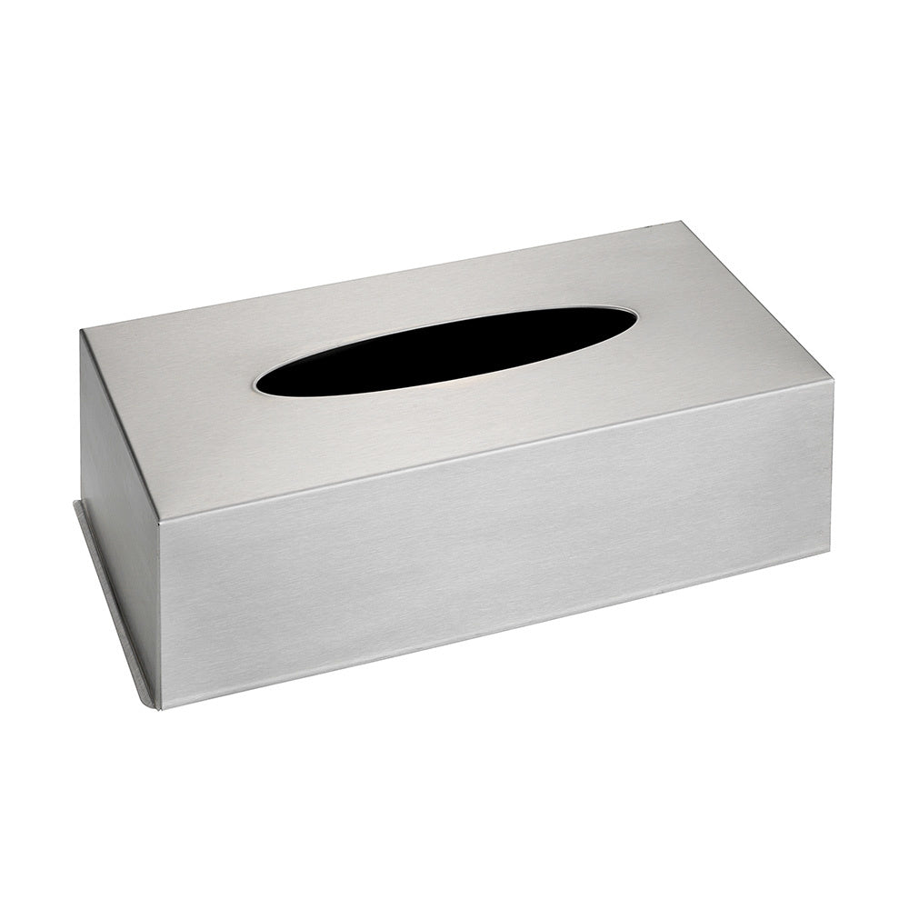 Die Tissue-Box ist aus robustem Edelstahl gefertigt und misst 25 cm in der Breite, 12 cm in der Tiefe und 8 cm in der Höhe. In diesen Tissue-Halter passen rechteckige Taschentuchpackungen. Die silberne Farbe passt gut in jede Küche, jedes Bad oder Wohnzimmer.