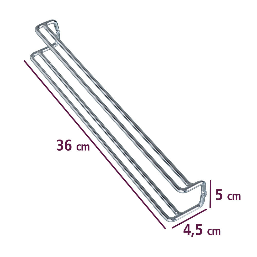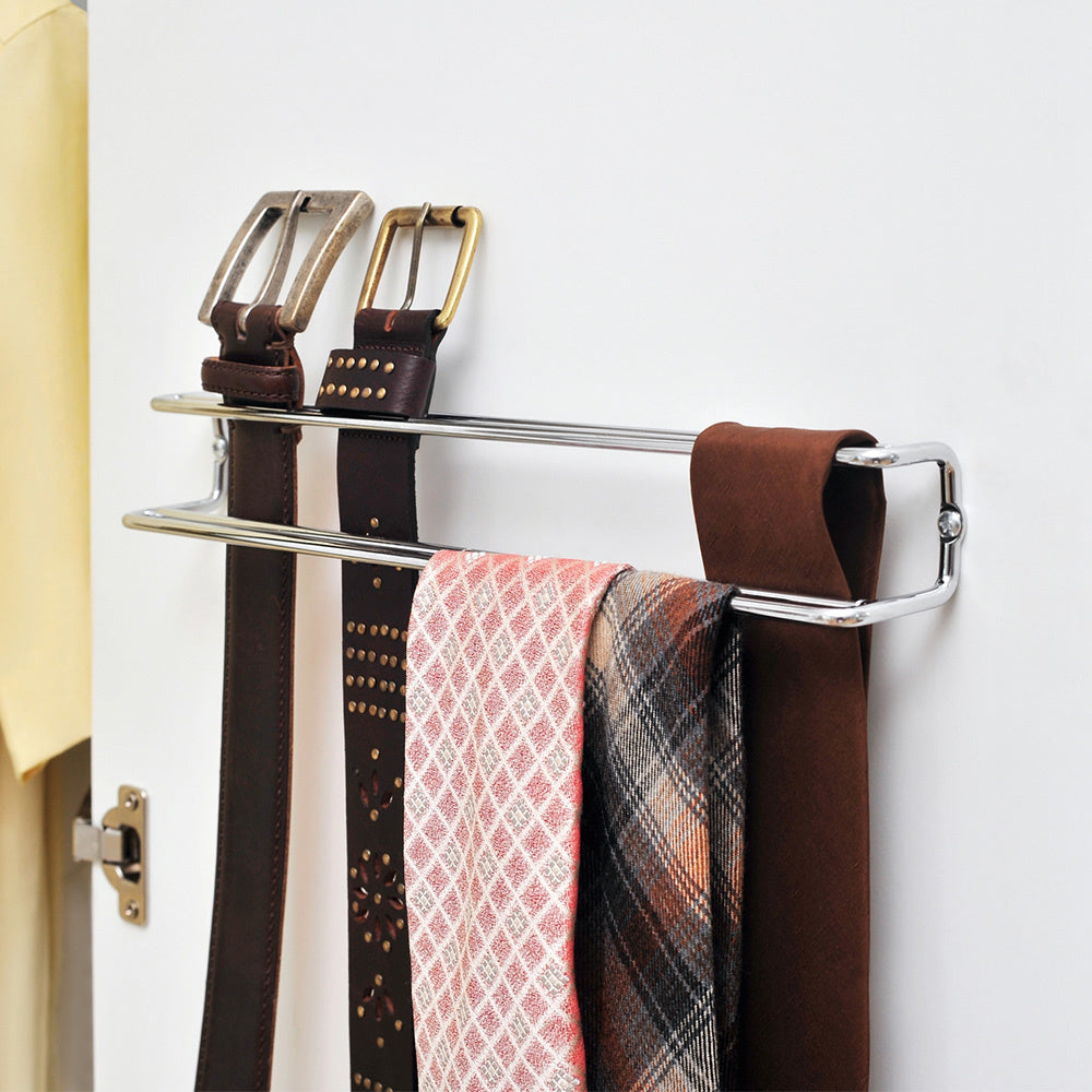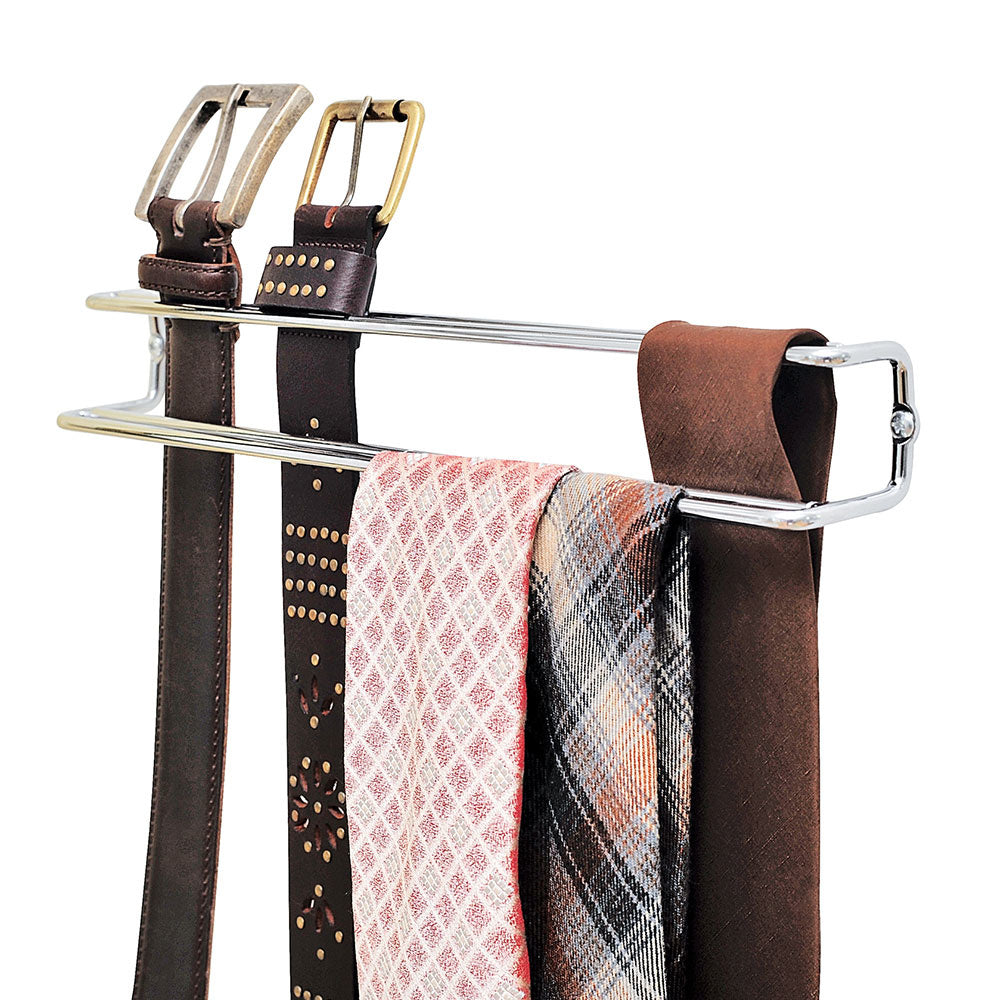 Der Krawatten-Organizer ist 36 cm breit, 5 cm tief und 4,5 cm hoch. Der Gürtelhalter ist aus glänzendem, verchromtem Metall gefertigt und kann mit zwei Schrauben (nicht im Lieferumfang enthalten) einfach an der Innenseite der Schranktür oder an der Wand befestigt werden.