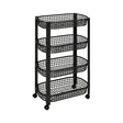 Deze zwarte trolley biedt praktische opbergruimte voor verschillende ruimtes in huis. Dankzij de vier open manden kun je eenvoudig producten organiseren in de keuken, badkamer of bijkeuken. De trolley staat op wielen waardoor je hem gemakkelijk kunt verplaatsen wanneer dat nodig is.