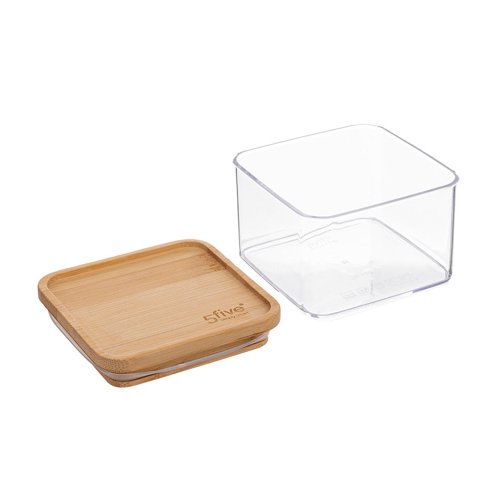 Die Vorratsdosen mit Bambusdeckel von der Marke Five® sind luftdicht und eignen sich daher zur Aufbewahrung und Organisation von Lebensmitteln. Die quadratischen Vorratsdosen mit Holzdeckel sind praktisch, stapelbar und ideal, um Lebensmittel länger frisch und trocken zu halten. Bewahre deine Nudeln, Reis, Haferflocken oder sogar Kuchen in diesen praktischen Behältern auf. Es gibt sie in verschiedenen Größen und somit ist auch für jeden das passende Produkt dabei. Die Behälter sind praktisch zum Kombinieren und Stapeln.