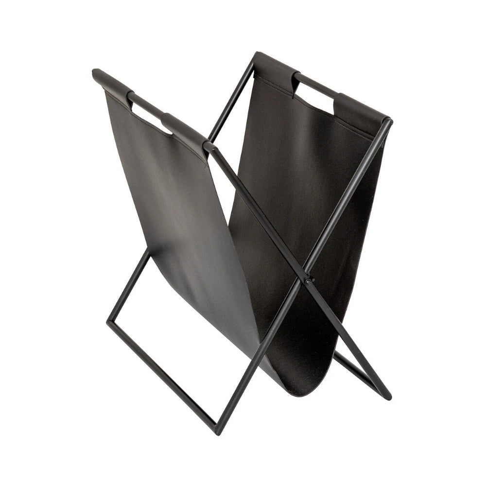 Deze magazinehouder is een stijlvolle en praktische oplossing om tijdschriften, kranten of documenten netjes op te bergen. Dankzij het minimalistische ontwerp met een metalen frame en leren houder past het rek goed in verschillende interieurstijlen.