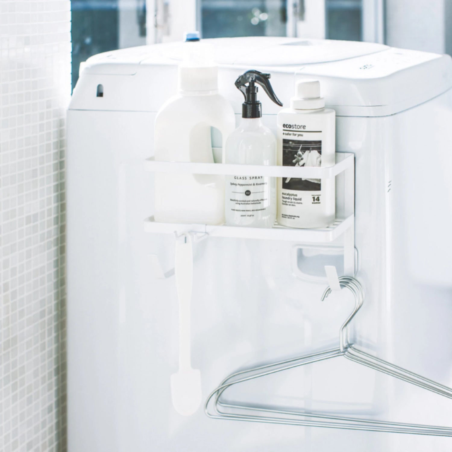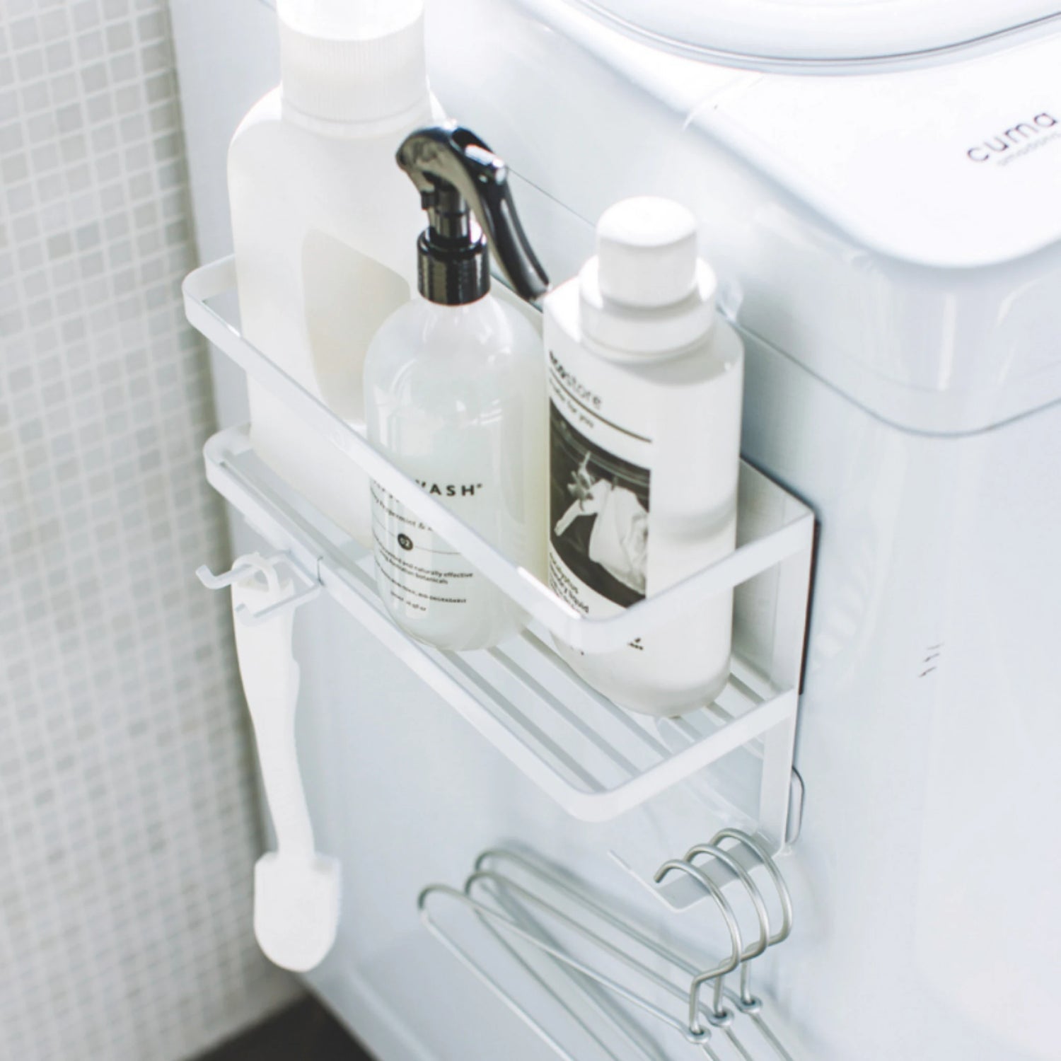 Der magnetische Hängeständer bietet eine praktische Möglichkeit, zusätzlichen Stauraum an oder um Ihre Waschmaschine herum zu schaffen. Dank der magnetischen Befestigung lässt er sich ohne Werkzeug oder feste Installation einfach an einer Metalloberfläche anbringen.