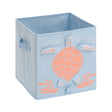 De mand heeft een stevige kartonnen binnenzijde en is afgewerkt met een polyester bekleding. Hierdoor blijft hij goed in vorm en heeft hij een nette, verzorgde uitstraling. Met een formaat van 29 x 29 x 29 cm past deze kastmand in standaard kubuskasten. Dankzij het opvouwbare ontwerp klap je de mand eenvoudig in wanneer je hem tijdelijk niet gebruikt. De zachte blauwe kleur met het decoratieve zeeschildpad motief aan de voorzijde zorgt voor een speels accent in iedere kinderkamer.