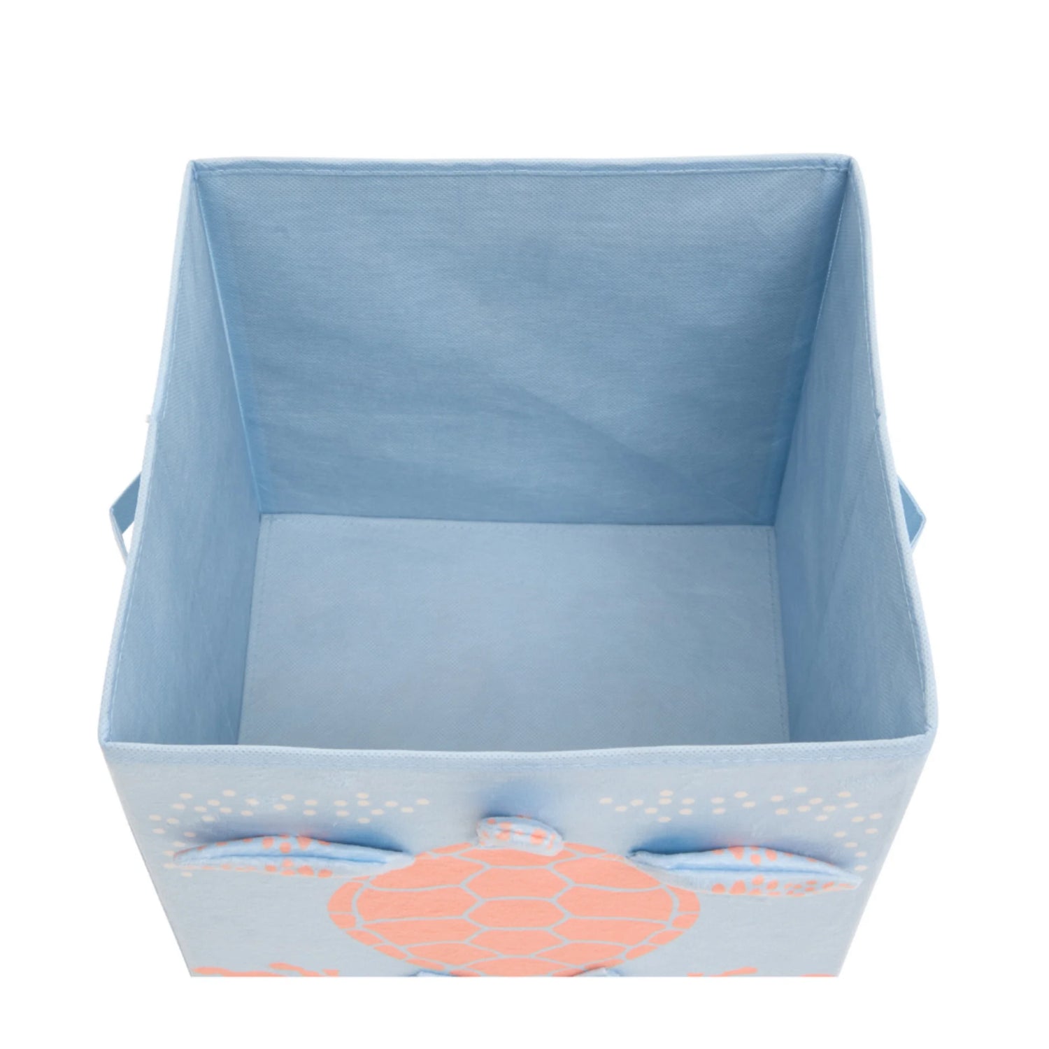 Deze opbergmand kinderkamer is een praktische én speelse oplossing om speelgoed netjes op te bergen. Het zeeschildpad design op de voorzijde geeft de mand een vrolijke uitstraling en maakt hem tot een leuke toevoeging aan de inrichting van de kinderkamer. Perfect voor gebruik in een kubuskast.