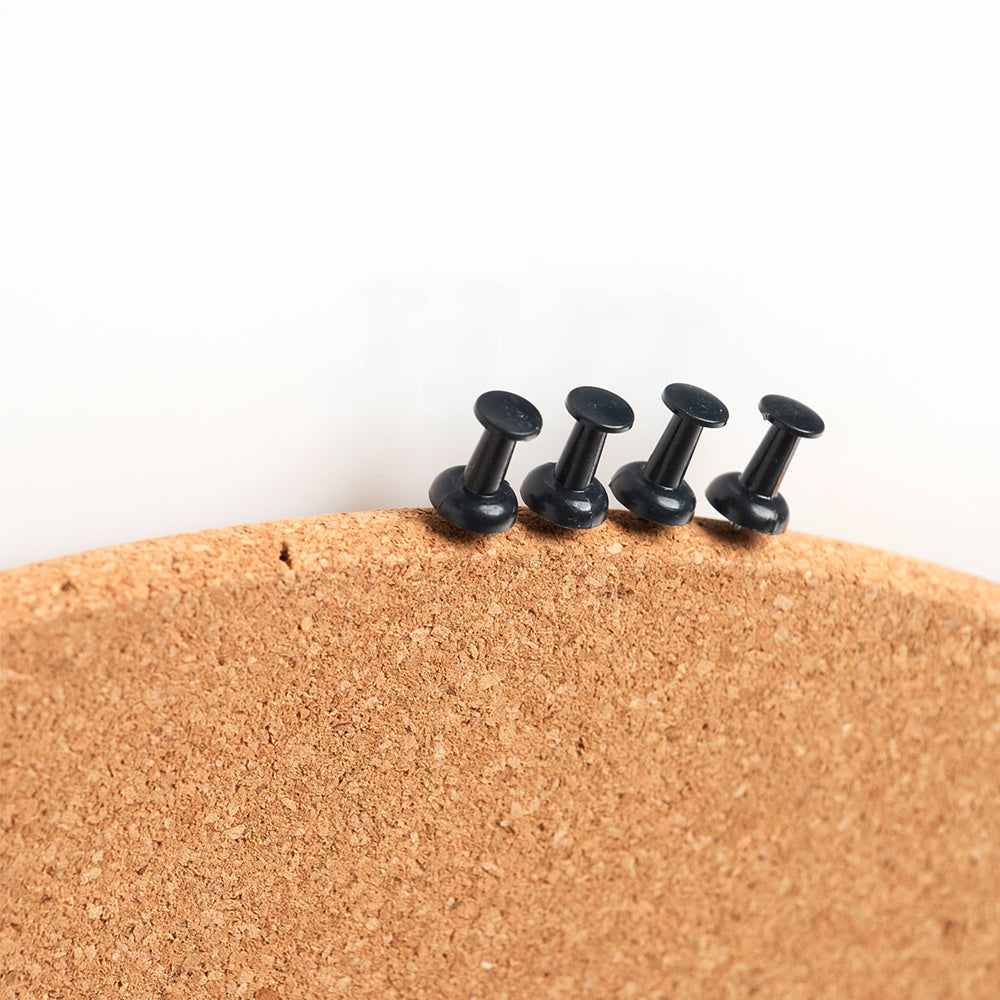 Stilvolle runde Pinnwand aus Kork für die Wand über dem Schreibtisch oder im Flur. Einfach an der Wand zu befestigen. Die Pinnwand ist rund und wird komplett mit vier schwarzen Reißzwecken geliefert.