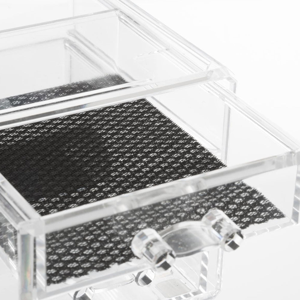 Du warst schon immer auf der Suche nach einem Organizer für Make-up oder Schmuck? Dann brauchst du nun nicht weiter suchen! Dieser Schmuckschrank besteht aus Acryl-Kunststoff und ist komplett transparent, so dass du alle deine Sachen übersichtlich aufbewahren kannst. Den Organizer gibt es in 3 Ausführungen mit den gleichen Maßen von 23,5 cm Breite, 15,5 cm Tiefe und 11 cm Höhe. Das Display mit 14 Fächern hat eine Breite von 22,5 cm, eine Tiefe von 12,5 cm und eine Höhe von 7 cm und kann auf jede der Schubladenschrankversionen gestapelt werden.
