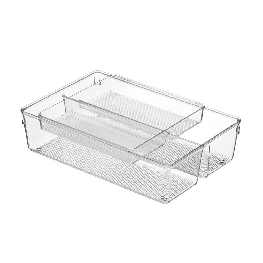 Dieser Schubladeneinsatz von iDesign ist ein perfekter kleiner Helfer, um Ordnung in die unordentliche Schublade zu bringen. Die Frage "Wie organisiere ich meine Schublade" ist hiermit beantwortet! Du kannst große und kleine Dinge darin verstauen und behältst dank der transparenten Farbe des Organizers den Überblick. Alle Organizer der Linus-Kollektion von iDesign sind transparent und passen daher perfekt in jede Küche, jedes Schlafzimmer und jedes Badezimmer!