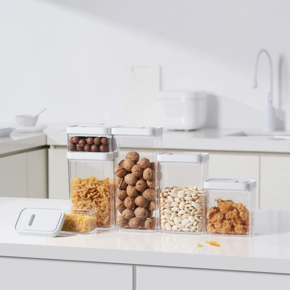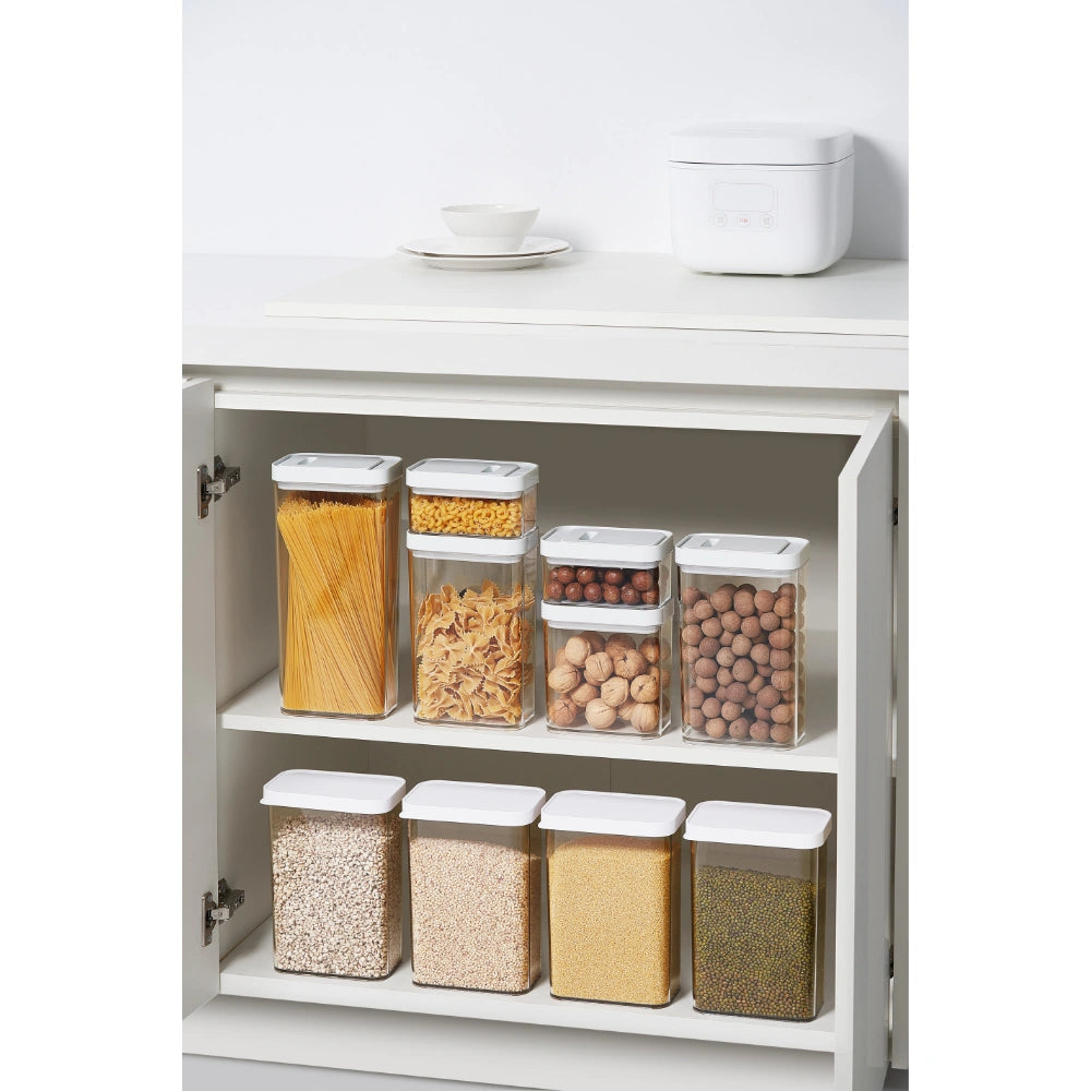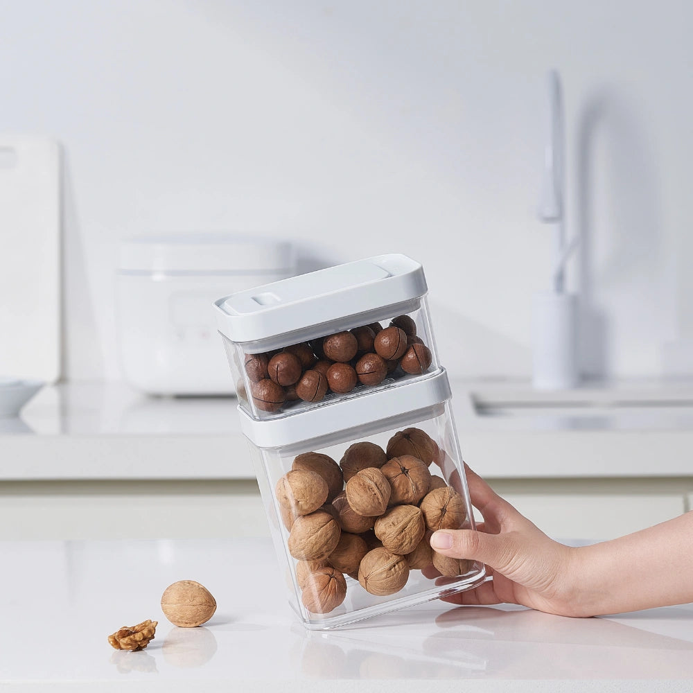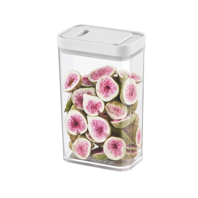 Die Vorratsdose ist aus robustem Kunststoff gefertigt und mit einem Silikonrand versehen, der einen zuverlässigen luftdichten Verschluss gewährleistet. Mit der praktischen Schiebefunktion im Deckel lässt sich die Dose einfach öffnen und schließen. Dadurch bleiben Produkte wie Reis, Pasta und getrocknete Zutaten länger frisch. Das stapelbare Design ermöglicht eine effiziente Raumnutzung in deinen Küchenschränken und sorgt für ein ordentliches Erscheinungsbild. Die Vorratsdose lässt sich mit verschiedenen Größen kombinieren: