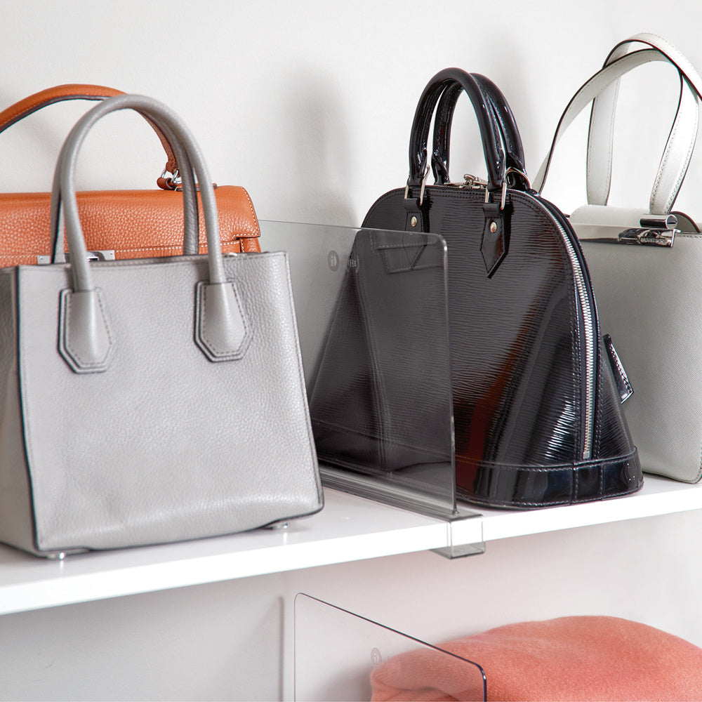 Dieser praktische Regaltrenner von The Home Edit unterteilt deine Regale ganz einfach in mehrere Fächer. Die Regaleinteilung hilft dir, deine Gegenstände leicht zu sortieren und den Überblick zu behalten.