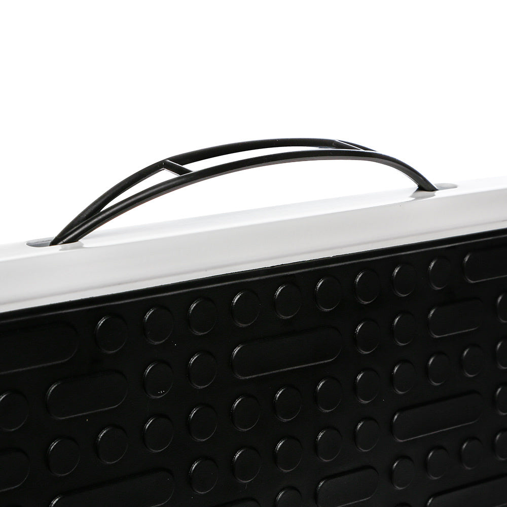Der klappbare Tritthocker ist aus Metall und Kunststoff Polypropylen hergestellt. Der klappbare Fußtritt ist außerdem mit einer rutschfesten Beschichtung und einem Sicherheitsschloss versehen. Die Gebrauchsanweisung sind dem Produkt beigefügt. Der klappbare Tritthocker ist 49 cm breit, 48 cm tief und 44 cm hoch.
