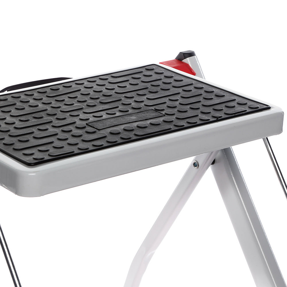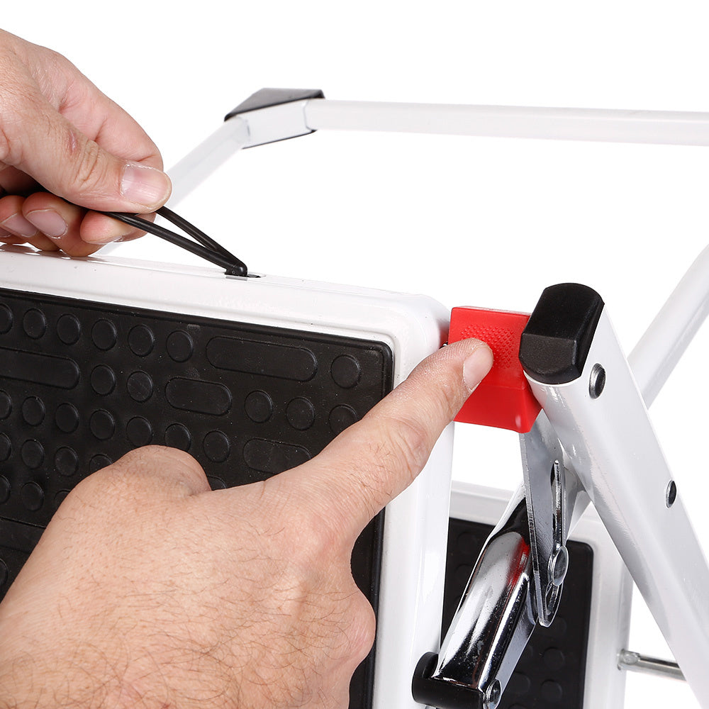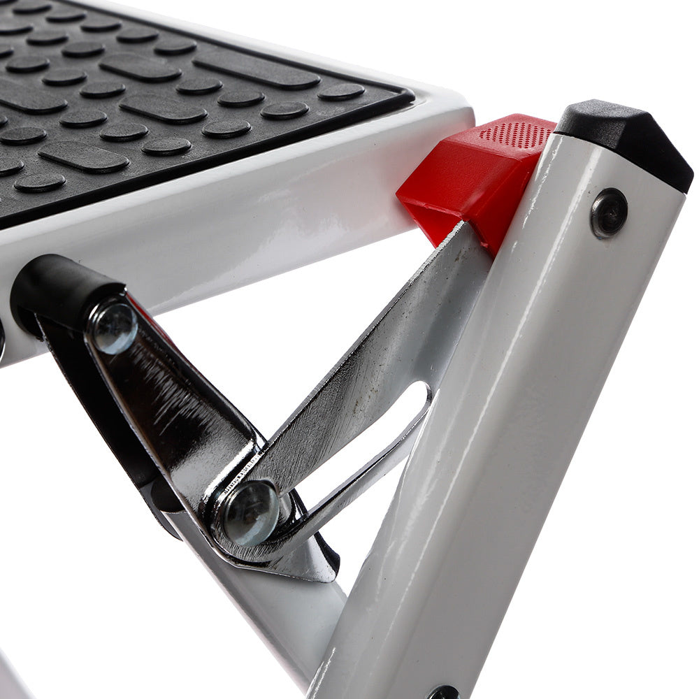 Dieser klappbare Tritthocker mit rutschfester Beschichtung und Sicherheitsverriegelung ist die Lösung für das Greifen von Gegenständen, die weit oben gelagert sind. Mit einer Tragfähigkeit von 150 kg kann jeder im Haus diese Stufe sicher benutzen.