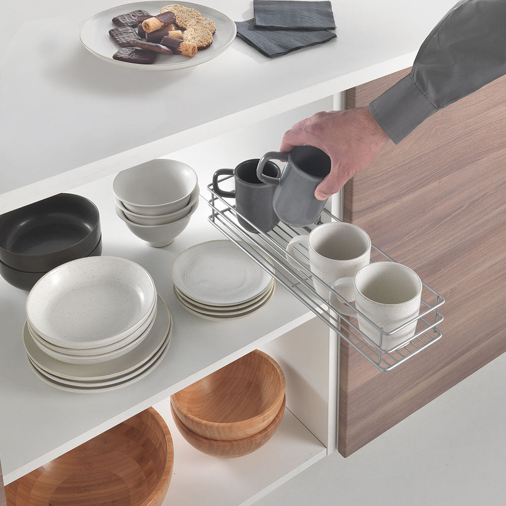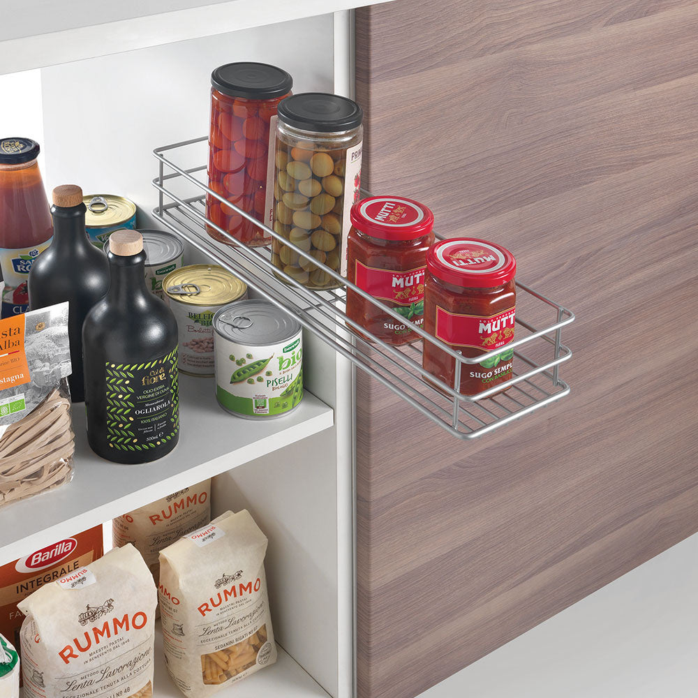 Dieses ausziehbare Küchenschrankregal eignet sich ideal zum Aufbewahren von Gegenständen im Schrank. Ein tiefes Küchenschrankregal, das für Ordnung in der Küche sorgt.