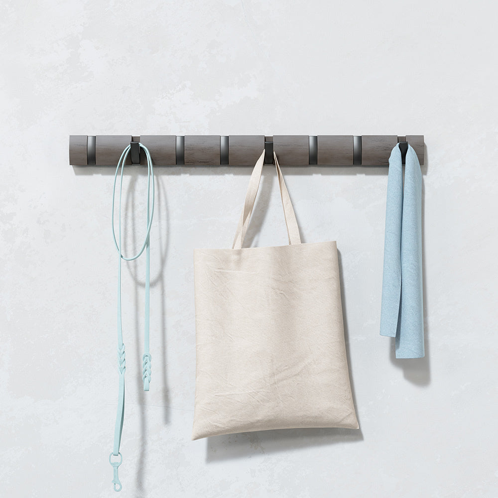 Sie können den UMBRA-Garderobenständer auch zum Aufhängen von Schlüsselbändern, Hundeleinen, Schals und Hüten verwenden. So haben Sie alles an einem Ort und halten Ihren Flur ordentlich und aufgeräumt. Möchten Sie noch mehr Orte in Ihrer Wohnung organisieren? Dann hängen Sie ihn einfach an Ihren Kleiderschrank für Schmuck, dünne Schals, Gürtel und Krawatten. Oder hängen Sie ihn im Badezimmer auf: Wenn Sie duschen, klappen Sie die Kleiderhaken aus, um Bademantel, Handtuch und Kleidung aufzuhängen, und schließen Sie sie, wenn Sie fertig sind. Sie suchen also eine Designergarderobe mit klappbaren Haken? Dann ist dieser UMBRA-Garderobenständer die Wandgarderobe, die Sie suchen.