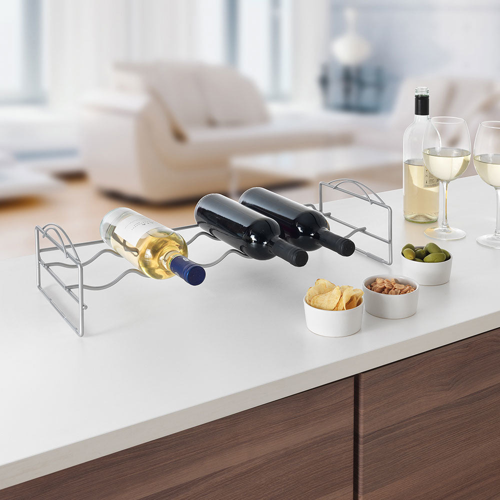 Dieses Weinregal ist stapelbar und ideal, um Platz in deinem Küchenschrank zu sparen. Das Weinregal erleichtert die Aufbewahrung von deinem Lieblingswein und kann auch für andere Flaschen ähnlicher Größe verwendet werden. Es bietet Platz für 6 Flaschen.