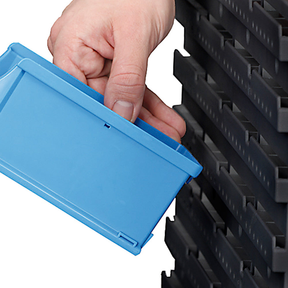 Die Aufbewahrungsboxen für die Werkstatt werden in einem gebrauchsfertigen Set mit zwei Kunststoff-Hängeleisten geliefert und eignen sich ideal als Ergänzung zu deinem Werkstattregal. Die Wandelemente können dann sowohl in vertikaler als auch in horizontaler Richtung benutzt werden.