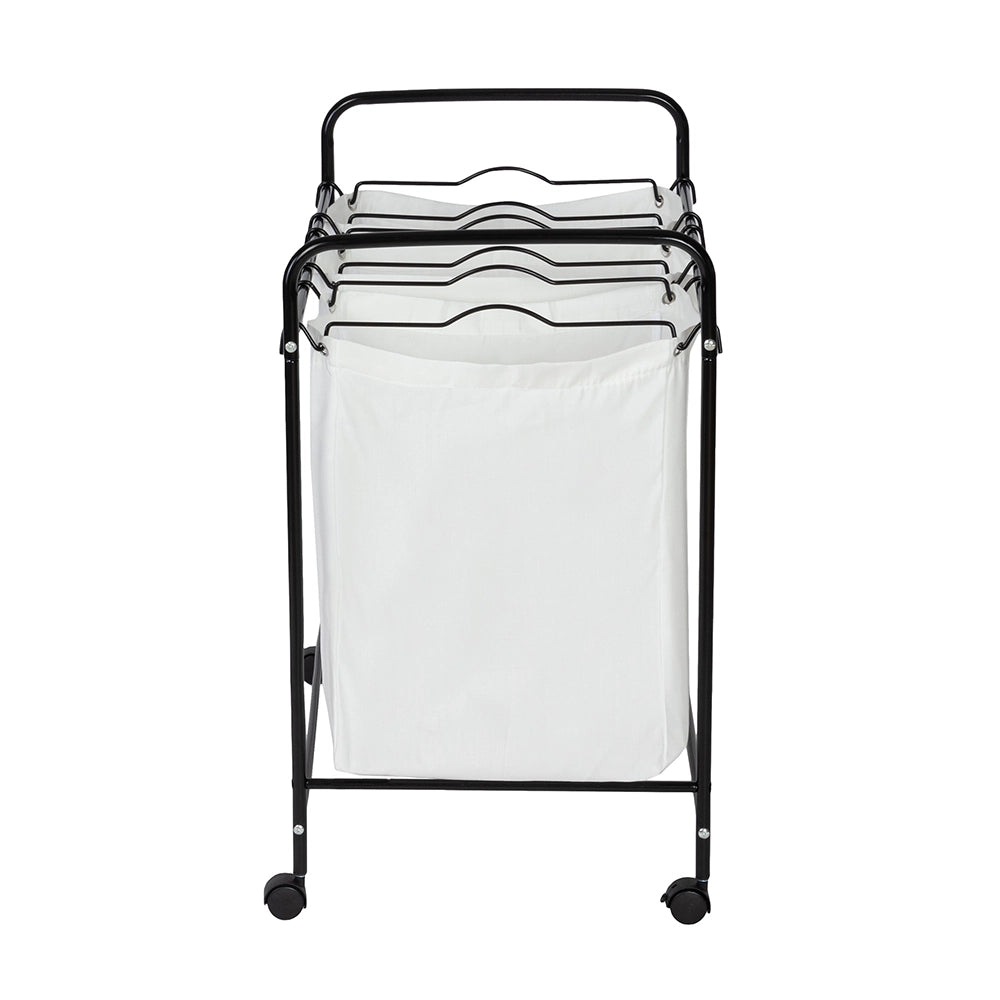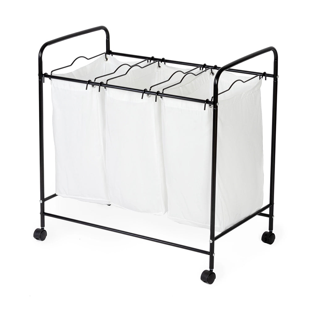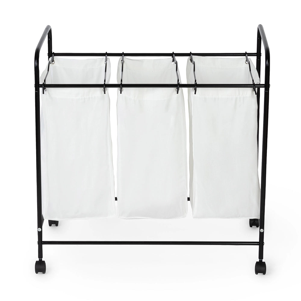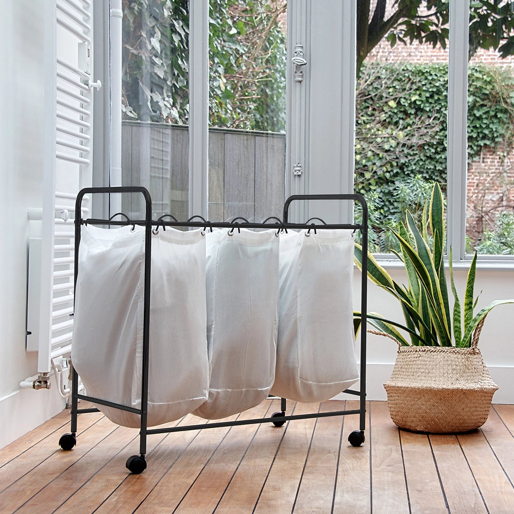 Dieser praktische Wäschekorb ist mit drei separaten Fächern ausgestattet, die das Sortieren der Wäsche nach Farbe oder Material zum Kinderspiel machen. Die schwarz lackierte Metallstruktur mit Epoxy-Finish garantiert Qualität und verleiht jeder Waschküche einen modernen Touch. Die weißen Wäschesäcke aus Polycotton sind nicht nur praktisch, sondern auch ästhetisch ansprechend und fügen sich in jede Inneneinrichtung ein.